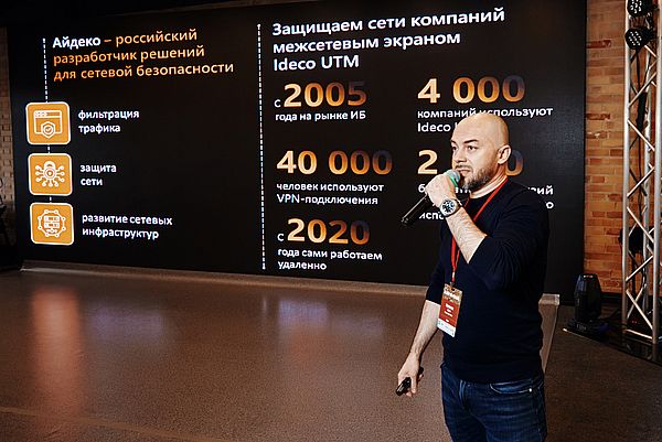 Представители российского производителя программных продуктов для фильтрации трафика, защиты сетей и развития сетевых инфраструктур любого уровня сложности компании ideco познакомили со своим продуктом участников конференции.