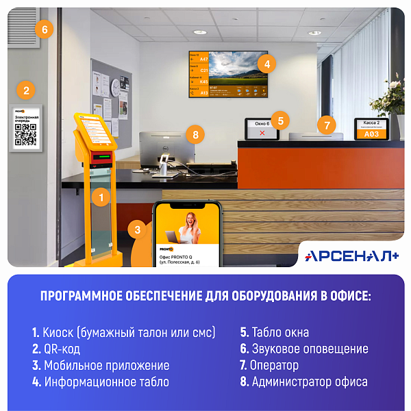 Компания «Арсенал+» расширяет ассортимент решений для цифровизации бизнеса и рада объявить о новом партнерстве с «Пронто Кью» - российским разработчиком системы управления электронной очередью ProntoQ. Это современное ПО включено в реестр Минцифры и помогает оптимизировать потоки клиентов, повысить уровень обслуживания и улучшить взаимодействие с посетителями в вашей организации.