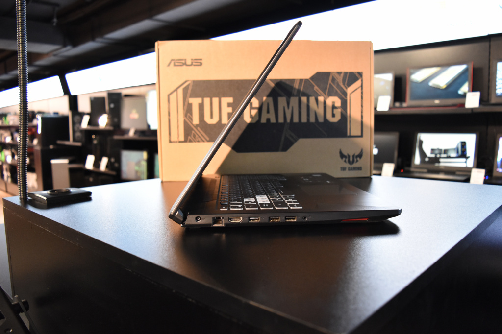 Ноутбук имеет IPS-дисплей с разрешением матрицы FullHD (1920x1080) и высокой частотой обновления 144 Гц. Также лэптоп оснащен двумя накопителями – HDD на 1 ТБ и SSD-накопителем 256 ГБ. ASUS TUF FX705GM-EW228T предоставляет весьма неплохой простор для апгрейда в рамках ноутбуков. Можно заменить не только жесткий диск на более объемный, но и SSD-накопитель формата M.2, а вот вытащить DVD-привод и поставить вместо него второй SSD-накопитель с помощью переходника нельзя по банальной причине полного отсутствия привода оптических дисков как такового.