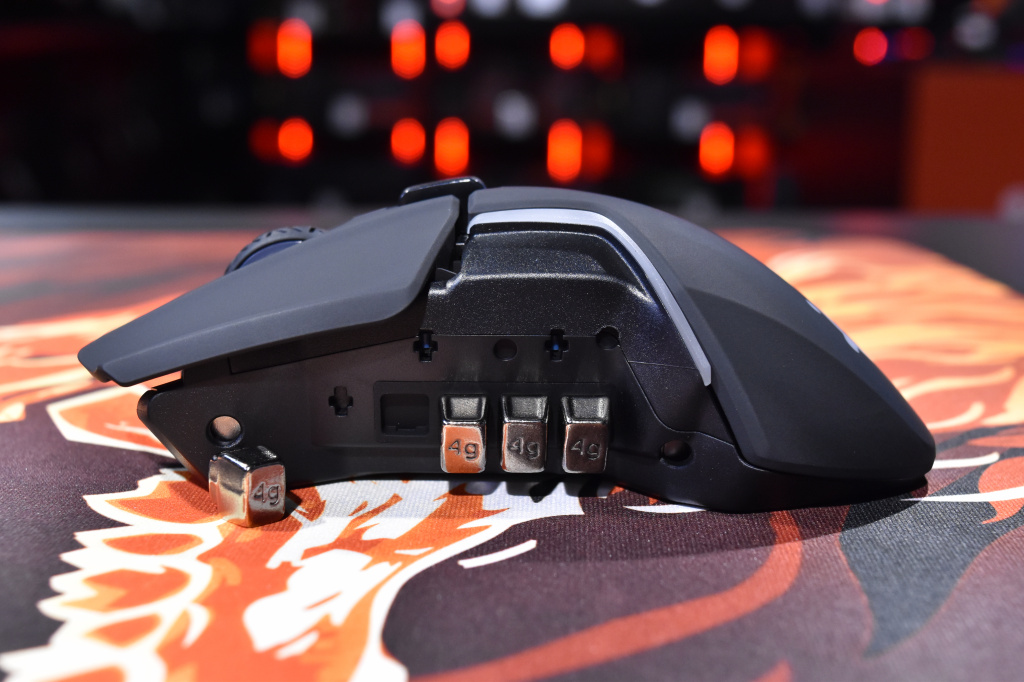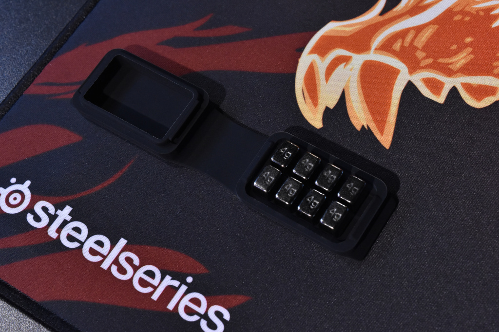 Одной из интересных особенностей Rival 650, кроме своей конструкции двойного сенсора, является инновационная система регулировки веса. Чем же она так хороша? Для того, чтобы ответить на данный вопрос стоит буквально на секунду углубиться в историю. Как правило, раньше регулировка веса в мышках была условная. То есть игрок обычно помещал специальные грузики внутрь мышки, где для них были предусмотрены специальное место, которое как правило находилось на дне устройства. Но в Rival 650, SteelSeries решили пойти дальше. Вместо привычной схемы, геймер теперь сам выбирает и равномерно распределяет вес мышки с помощью грузиков. В Rival 650 предусмотрено четыре отдельных слота с каждой стороны девайса (!), которые позволяют установить до восьми грузиков весом 4 грамма. Проблема распределения веса внутри мышки, по сути, решена вот таким вот простым, но очень эффективным решением, которое должно удовлетворить любого, кто хочет идеально настроить свою мышку под себя.