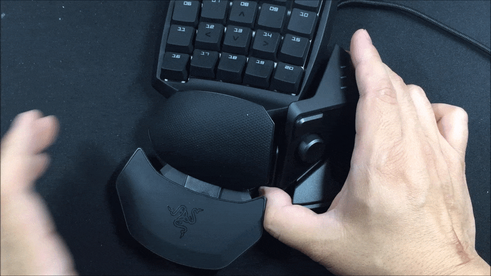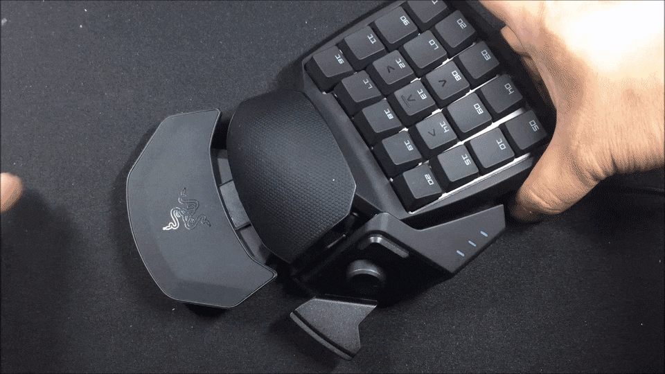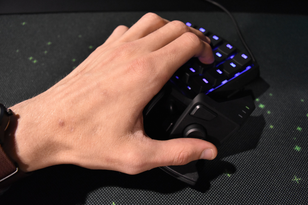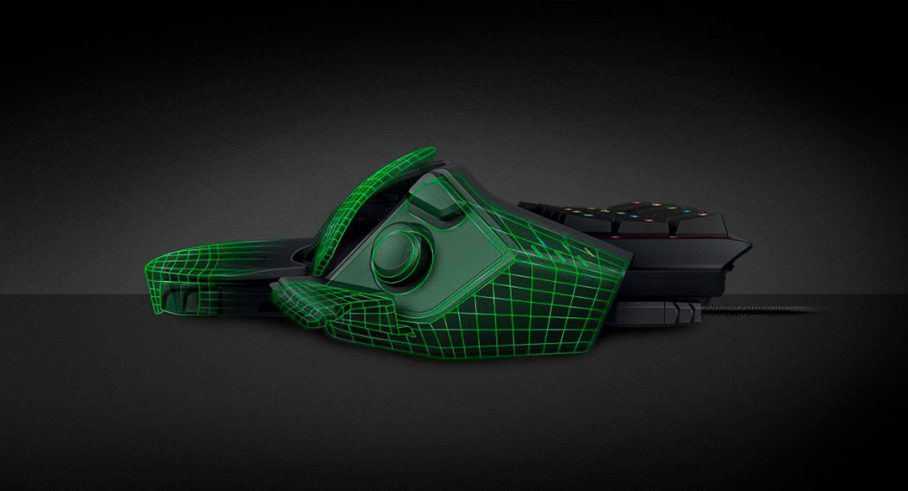 Блок справа, который, к слову, тоже регулируется, предназначен для большого пальца, и здесь находится необычной формы кнопка, выполняющая функцию пробела, а также небольшой 8-позиционируемый мини-джойстик и кнопка переключения профилей. Профили настраиваются в фирменном программном обеспечении Razer Synapse 3.0, где геймер может переназначить как любую из 20 функциональных клавиш основного блока, так и назначить любые действия на 8-позиционный джойстик. Помимо этого, можно записывать и применять макросы в играх, а также создавать до 8 профилей для различных игр и быстро между ними переключаться нажатием одной кнопки.
